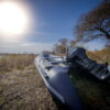Конструкция струбцины мотора позволяет регулировать рабочий угол атаки (5 положений), а также фиксировать мотор в положении движения по мелководью и полностью поднятом положении. На струбцине предусмотрена петля для крепления старховочного троса.