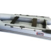 В качестве пола на лодке применяется полностью надувная конструкция, представляющая из себя независимый герметичный отсек, выполненный из армированного ПВХ материала, плотностью 850 гр/м.кв. Благодаря наличию внутренних переборок, такое днище обеспечивает необходимую жесткость всей конструкции лодки в целом. Надувное днище имеет ровную палубу в кокпите, что позволяет удобно передвигаться по лодке, и размещать в кокпите необходимый груз.